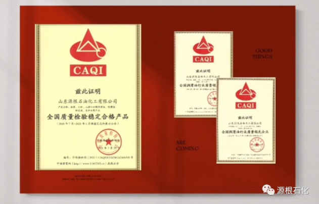 近日,在由国家质量检验总局主办的2021年全国“质量月”评选活动中,经国家质检总局、中国质量检验协会的综合全面评选,山东源根石油化工有限公司(以下简称“源根石化”)从上千家企业中脱颖而出,荣获“全国润滑油行业质量领先企业”、“全国润滑油行业质量领先品牌”、“全国质量检验稳定合格产品”三项国家级荣誉。